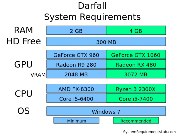 Check the Darfall system requirements. Can I Run it? Test your specs and rate your gaming PC. System requirements Lab runs millions of PC requirements tests on over 13,000 games a month.