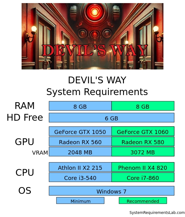Check the DEVIL'S WAY system requirements. Can I Run it? Test your specs and rate your gaming PC. System requirements Lab runs millions of PC requirements tests on over 13,000 games a month.